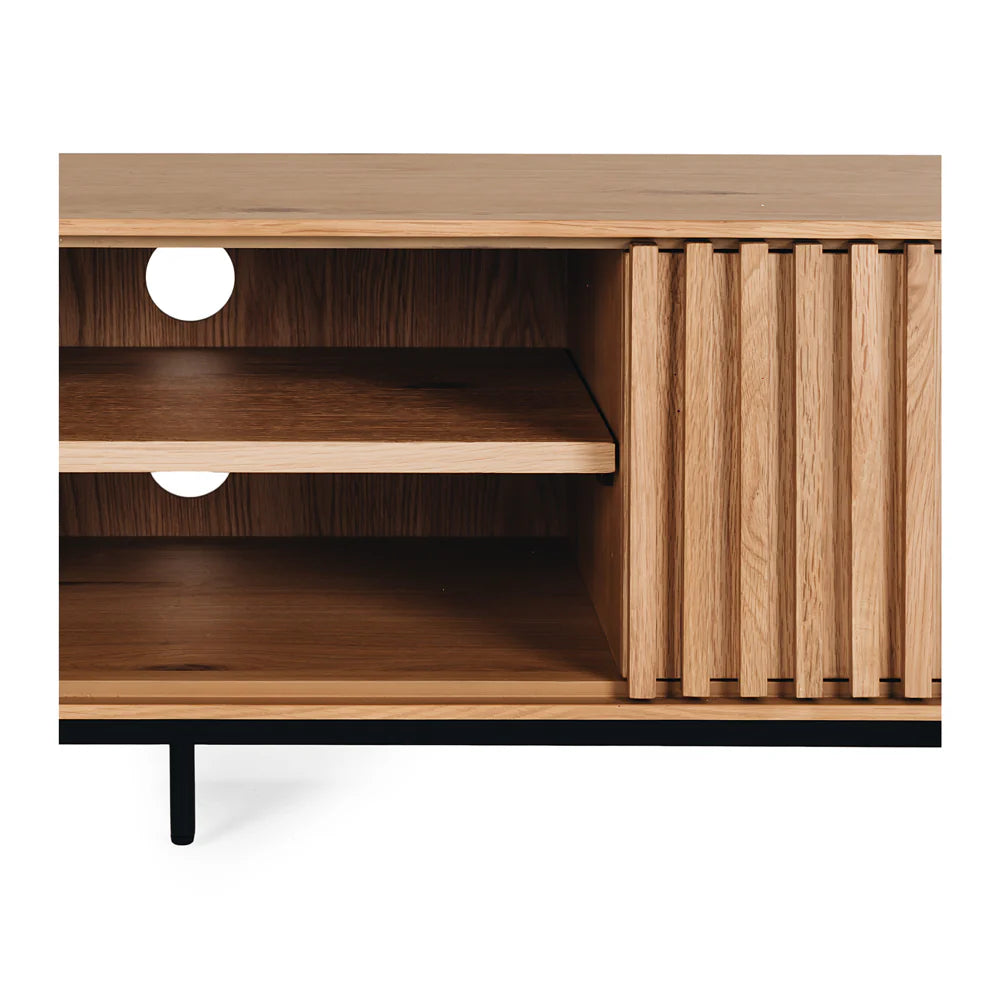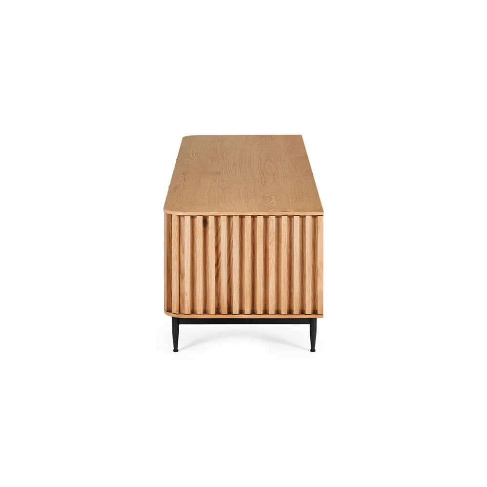 Construction Solid Oak with Oak veneers, unique strip panel design and soft closing doors