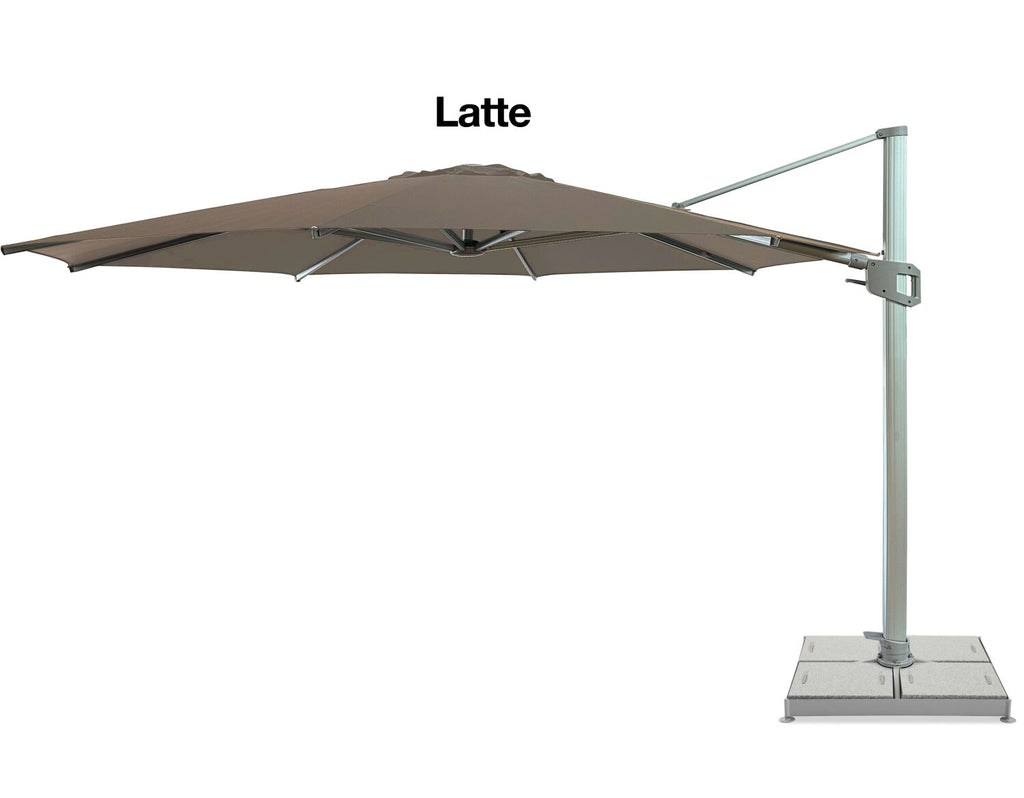 The Bali 3.3m round cantilever is one of Danske Mobler's premium outdoor umbrellas. The cantilever style allows for easy discussion around the table without having to look around a centre pole. The 360-degree rotation allows for protection from the sun all day long. The Bali 3.3m cantilever umbrella is ideal for shading outdoor lounge suites.